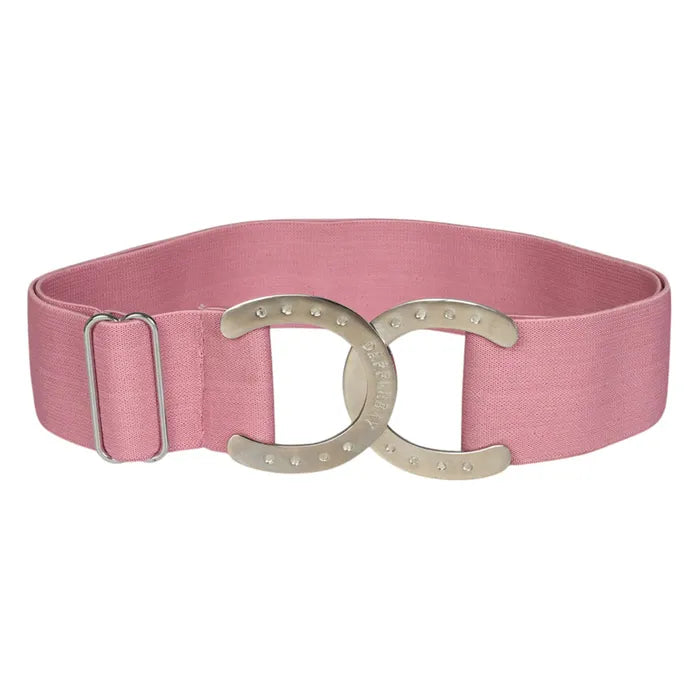 Experience effortless style and all-day comfort with the Dapplebay Horse Shoe Elastic Belt. The exclusive double horse shoe buckle adds a subtle equestrian touch while the soft, stretchy elastic provides a secure yet flexible fit. Fully adjustable to accommodate waist sizes from 24" to 48".