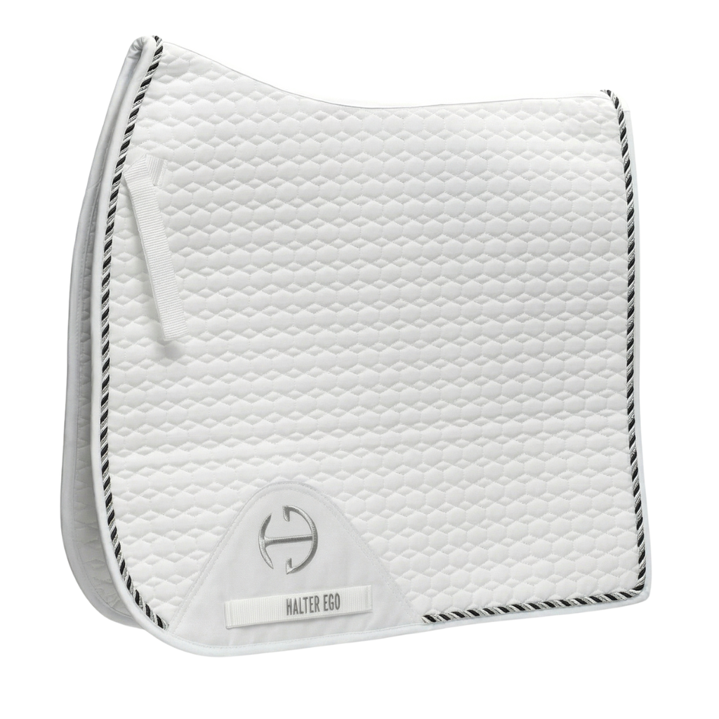 European Cotton Dressage Saddle Pad - White & Black Twist Trim